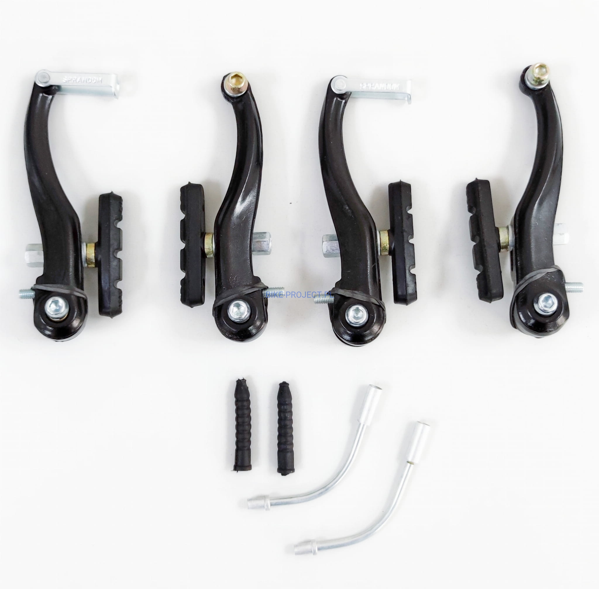 Hamulce aluminiowe V-brake . Komplet hamulców na 2 koła, klocki hamulcowe, śruby mocujące, aluminiowe fajki linki