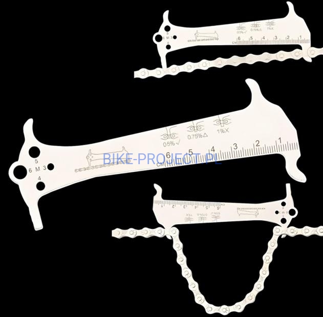 • dwustronny przymiar służący do pomiaru zużycia łańcucha rowerowego